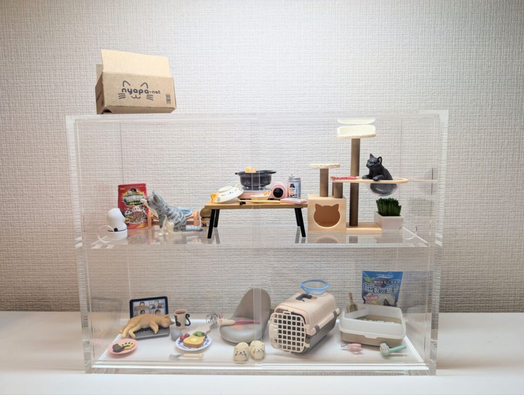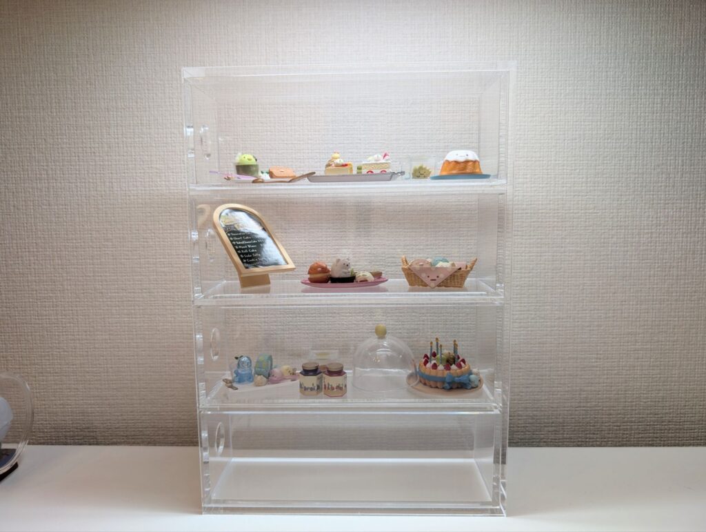 Amazonにも2000円くらいのコレクションケースがあったんですけど、「細かい傷や汚れがある、飾るものに愛がある人は無理」という口コミを見て辞めました。