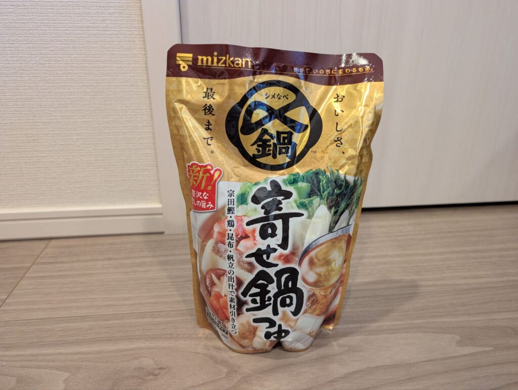 ミツカンの〆までおいしい鍋つゆシリーズは全部おいしいから、最初の一回はこれを買ってみてもいいかも。