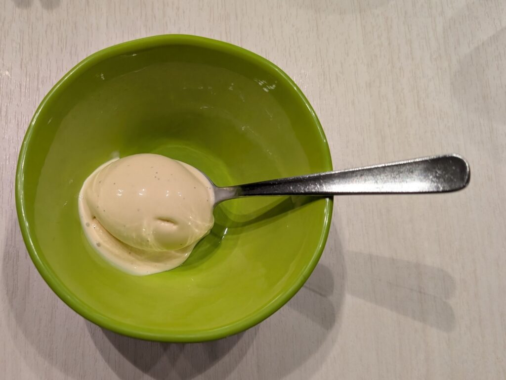 バイキングがもう閉まるって時間になぜか「バニラアイスが出来上がりました」というアナウンスが流れたので食べました笑