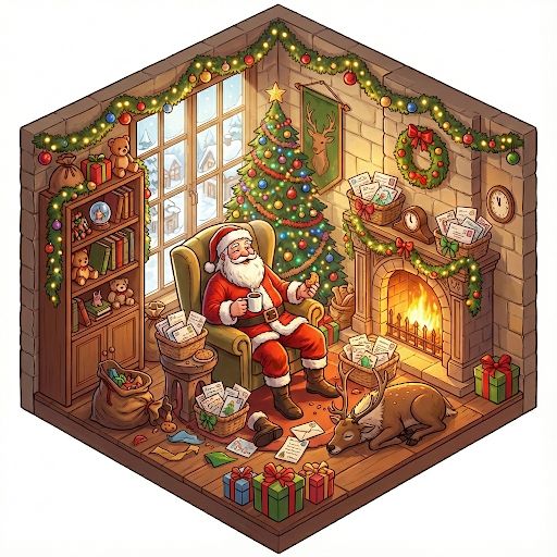 プレゼントを配り終えたサンタ。各国の子供たちからの手紙が溢れてる感じがすきです。