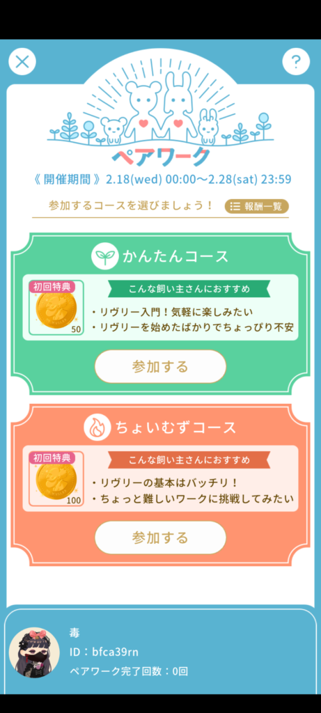 ちょいむずコースの報酬