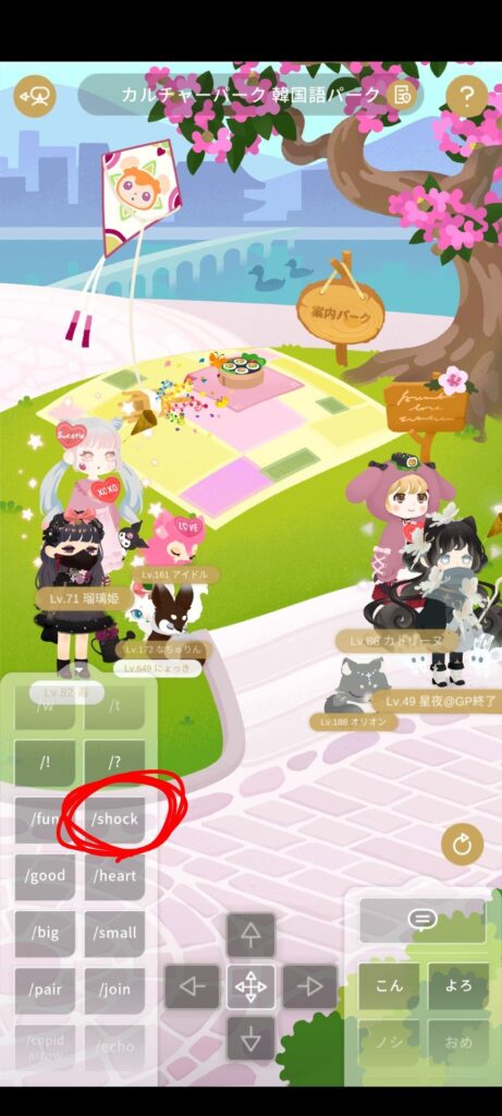 技のところを上にスワイプし、/shockを3回タップしましょう。
