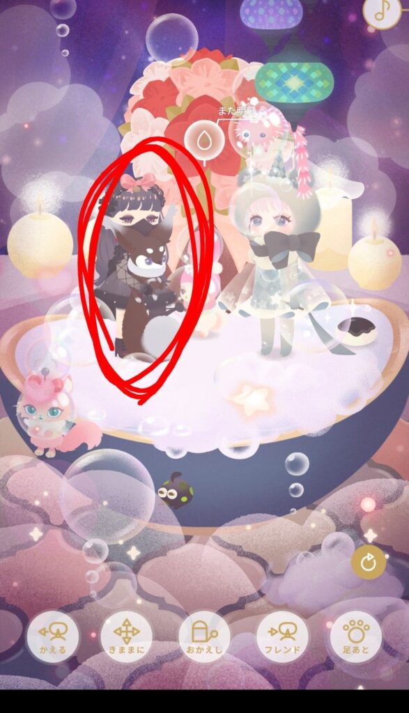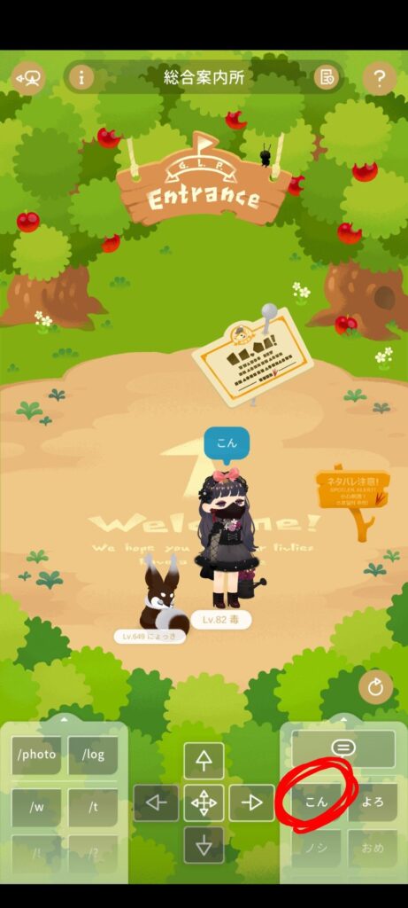 どこでもいいのでお散歩へ行き、挨拶のボタンをタップします。