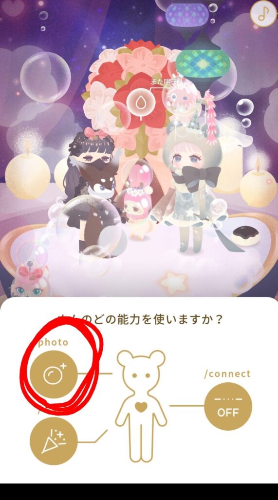 使える能力が出てくるので、photoを選択。