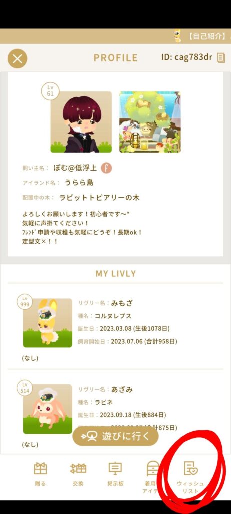 相手のウィッシュリストを開きます。