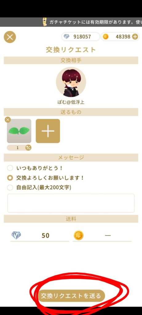 木の実をタップし、交換リクエストを送りましょう。