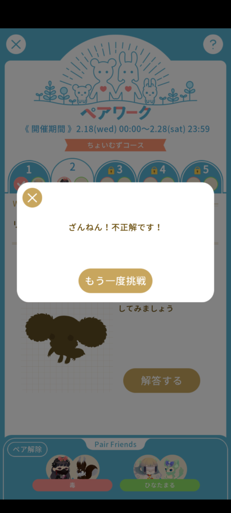 間違えてももう一度チャレンジができるので、正解できるまでチャレンジしてみましょう。