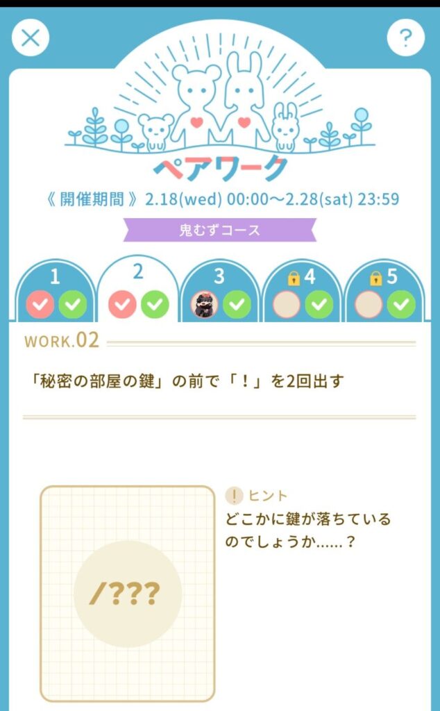 2 「秘密の部屋の鍵」の前で「!」を2回出す
