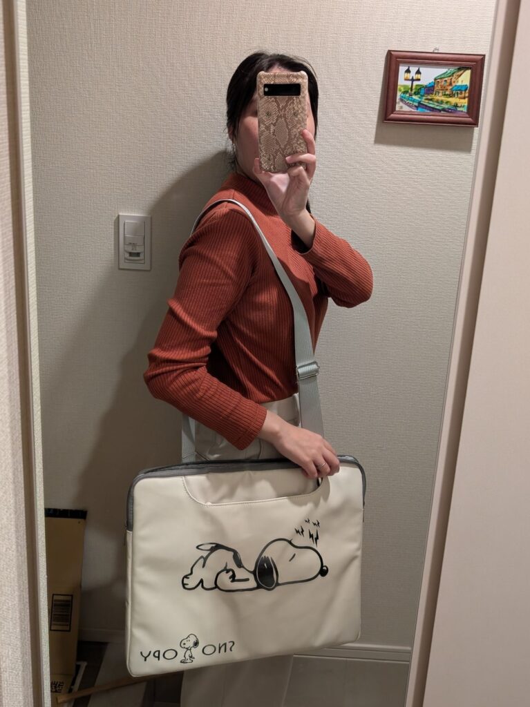 肩掛けの紐が後ろと前のフックにかけるので、バランス取りやすいです。
