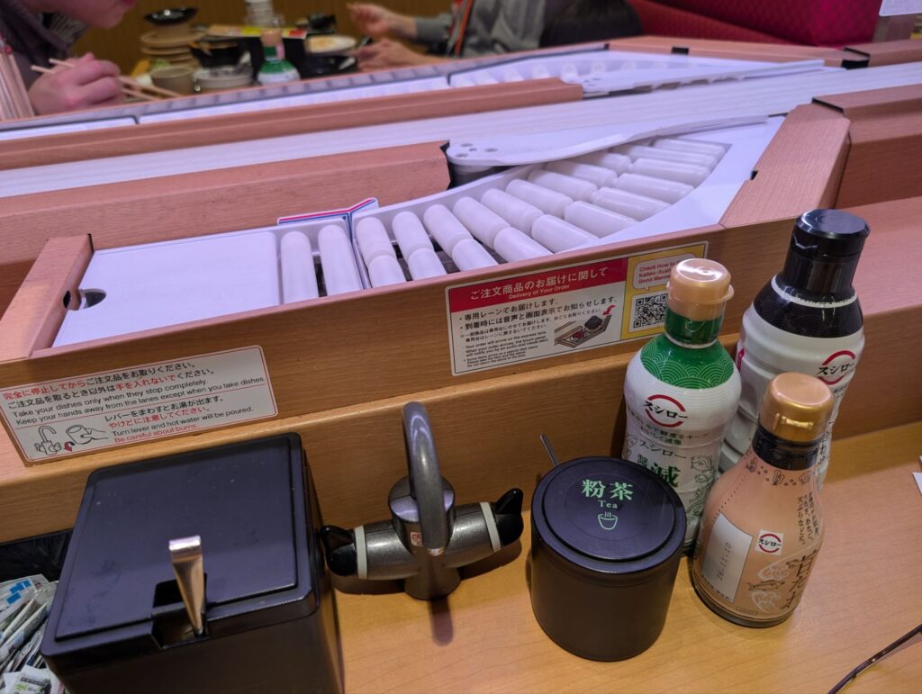 自分の席からは真ん中のレーンに手が届かないようになっていて、寿司ぺろ事件からの企業努力を思うともう尊敬…。