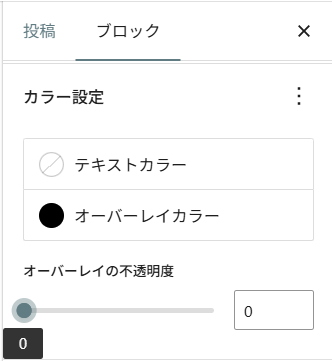 なぜかデフォルト設定だと灰色のオーバーレイがかかった状態になるので、オーバーレイの不透明度を0にしましょう。