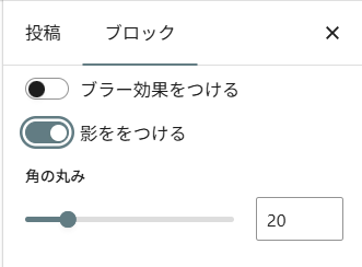 次に影をつけて、角の丸みを20に設定します。