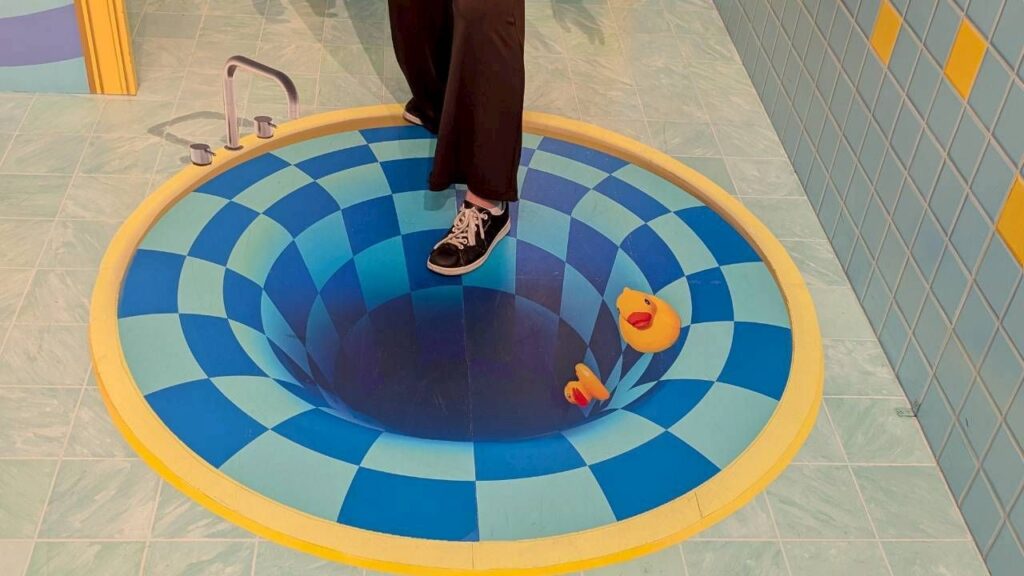 トリックアートも色々あって、目の錯覚を使ったものも沢山ありました。